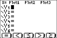 • Choose the "less than" symbol for this example. OK. ENTER. You will see "Y1 < " on the screen.