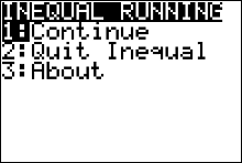 Hit APPS, ALPHA, x2 keys and an "Application" screen will appear with Inequalz listed at the top.